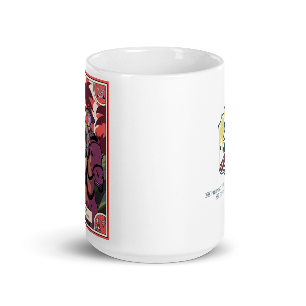This mug features Edwin Price Ramsey, a decorated U.S. soldier and guerrilla leader. Ramsey led the last U.S. Cavalry charge in the history of the armed forces, and acted as a guerrilla leader after Bataan. To learn more visit https://exhibition.dutytocountry.org/